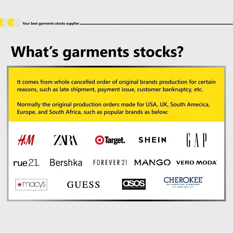 We sells all kinds of clothing stocks..