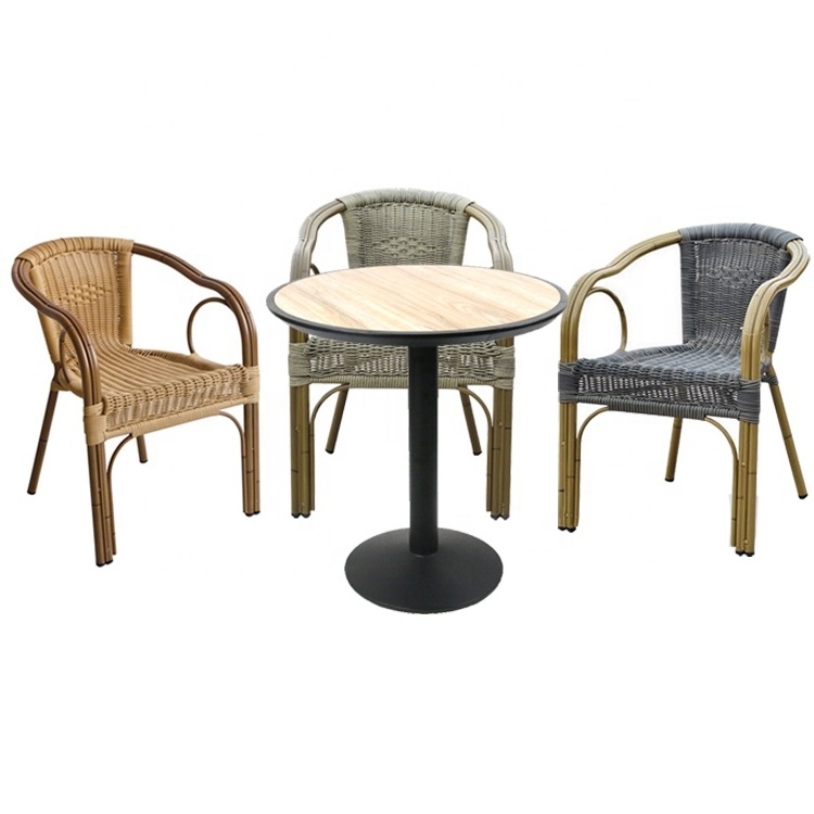 Foshan Manufacturer Rattan Coffee Bistro Aluminium Garden Table And 2 Chairs Set