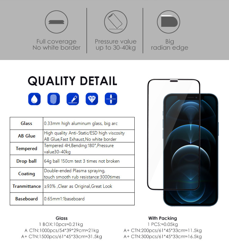 Anti-scratch, Anti-Fingerprint, anti-explosion, High Transparent, Anti-Oil