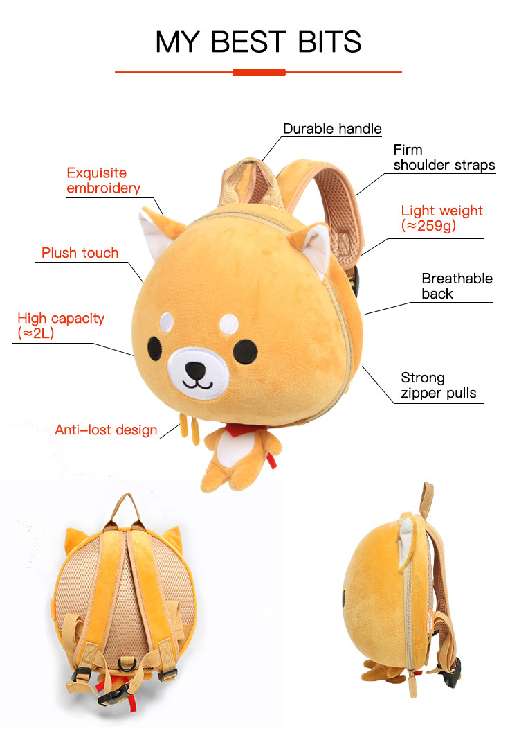 Toddler Boys Bag kids bagpack, cartoon zipper 3D Girls backpack for kids, 2019 animal dog shape children backpack rucksack