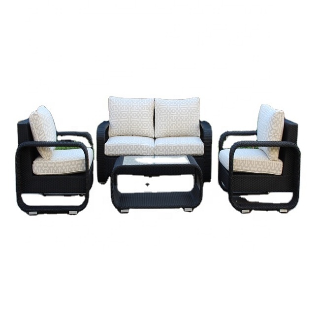 PE Rattan: 8*1.4 mm, Aluminum tube: 20*20*1.2 mm, Cushion: 10 cm thick, back pillow Terylene fabric: 180-320 g, Toughened glass: 5