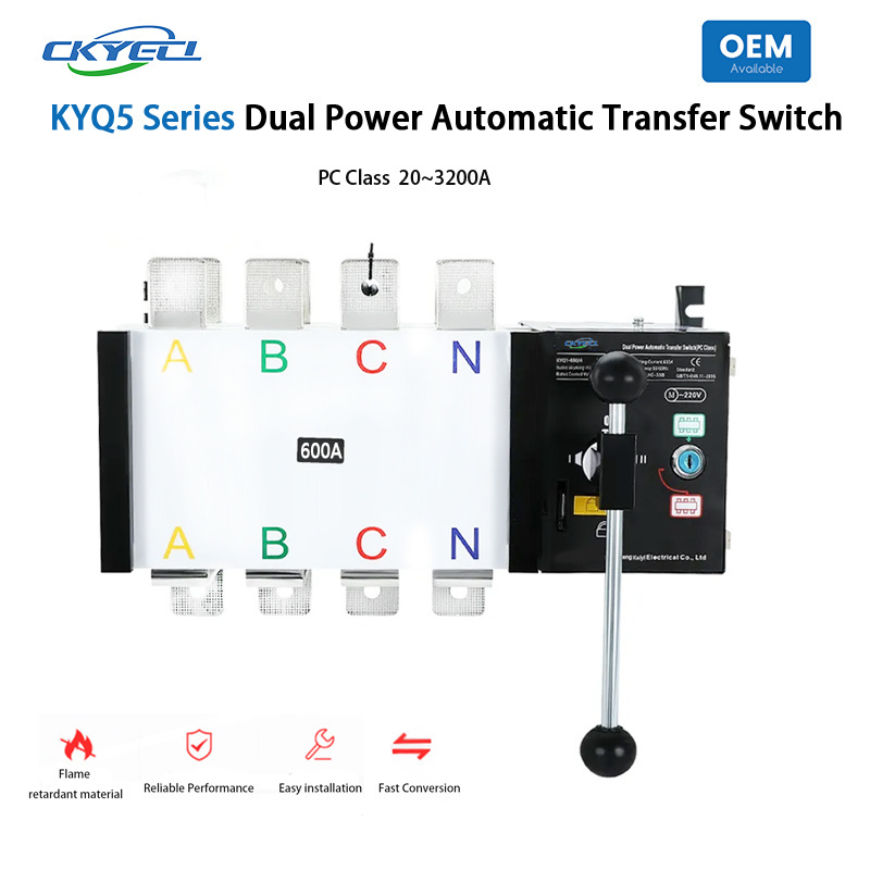 KYQ5 Automatic Transfer Switch (A.TS) is an automatic transfer switch that integrates switch and logic control without the need for an additional controller, truly achieving mechatronics integration. It has functions such as voltage detection, electrical, and mechanical interlocking, and can achieve automatic, electric remote, and emergency manual control.