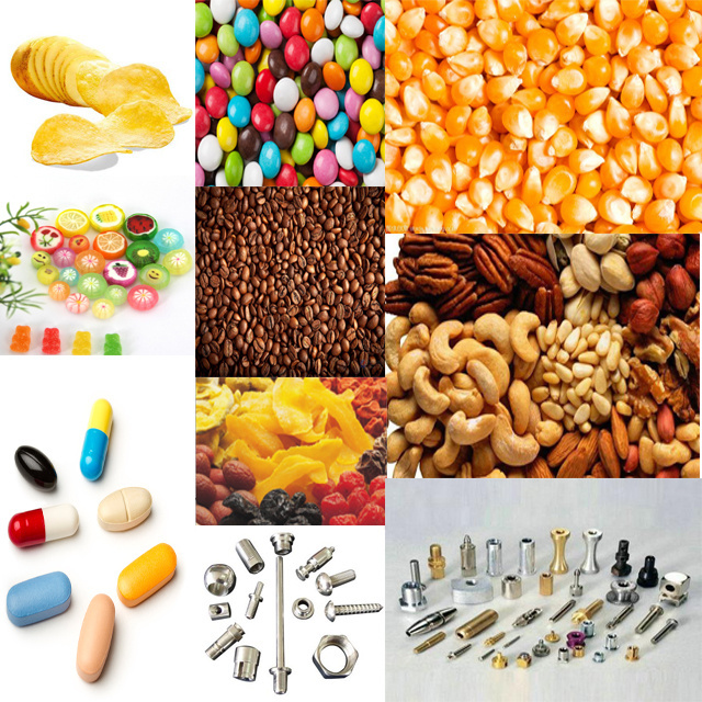 •Block material:fish boll,candy,red jujube,cereal,peanut,daily necessities,puffed food,etc. •Granules:granular drugs,