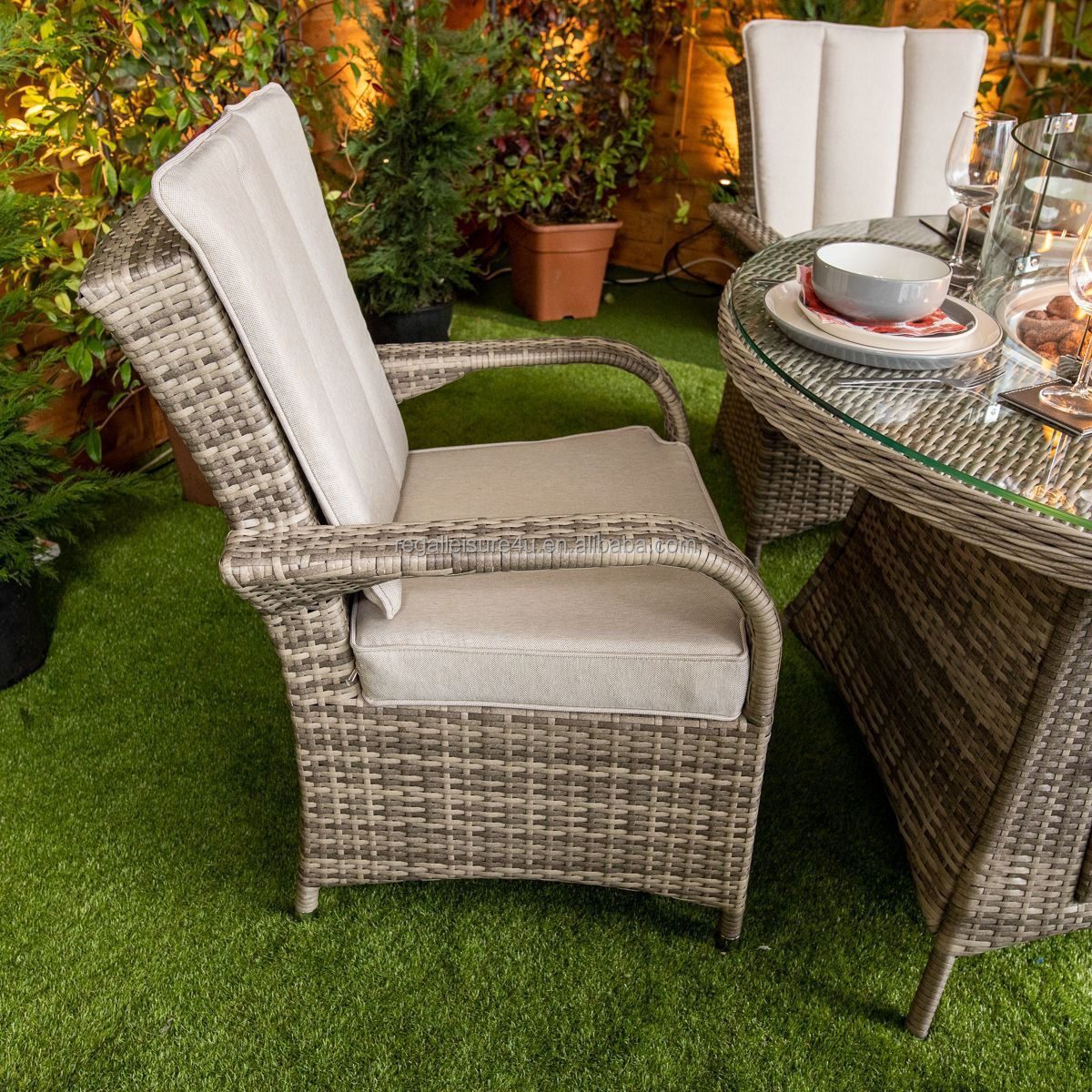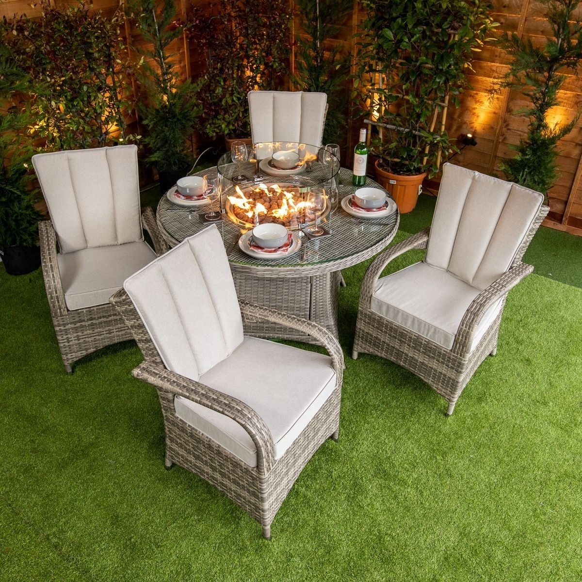 Outdoor furniture garden patio fire table garden dining set fire pit rattan Round 4 Seat Fire Pit Set for sale