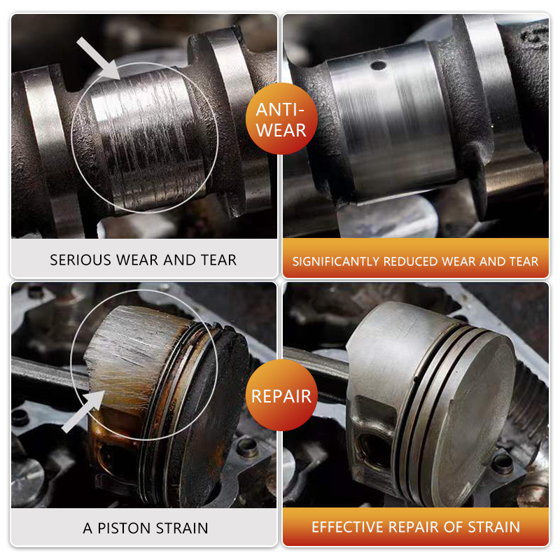 Adopting professional formula, this product contains brand-new anti-frication metallic compounds that could form metallic layer on the various frication surface of the engine.