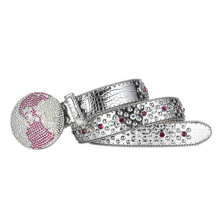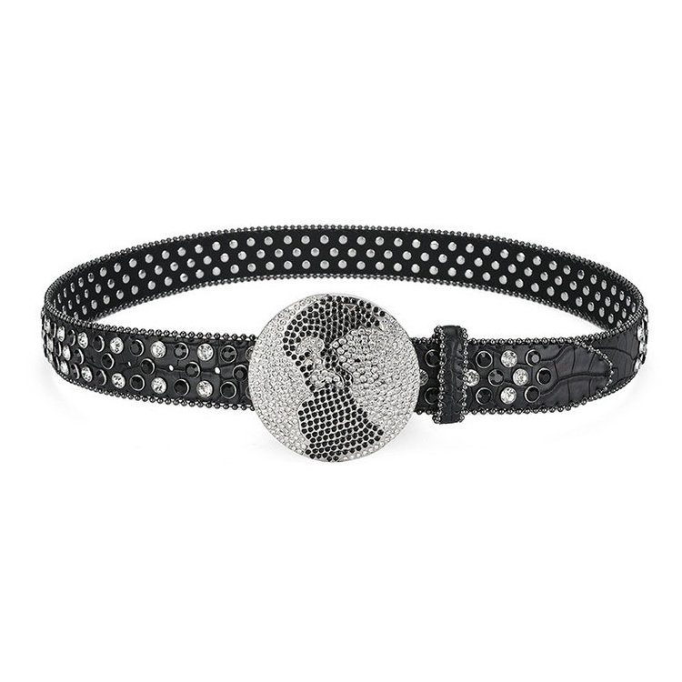 QS Earth buckle rhinestone belt men hip-hop punk style fashion belts for woman