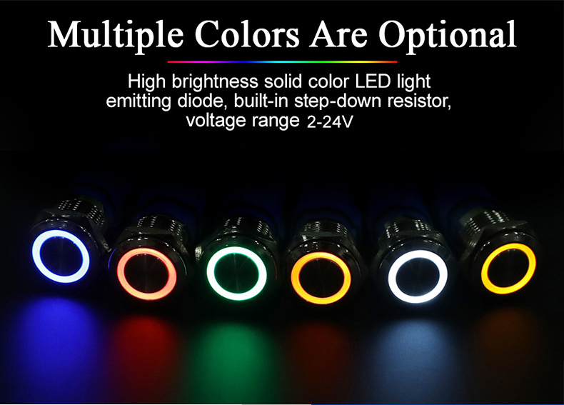 12mm 16mm 19mm 22mm 25mm momentary Latching Flat head 12v waterproof Ip68 2A stainless steel electric touch piezo switch