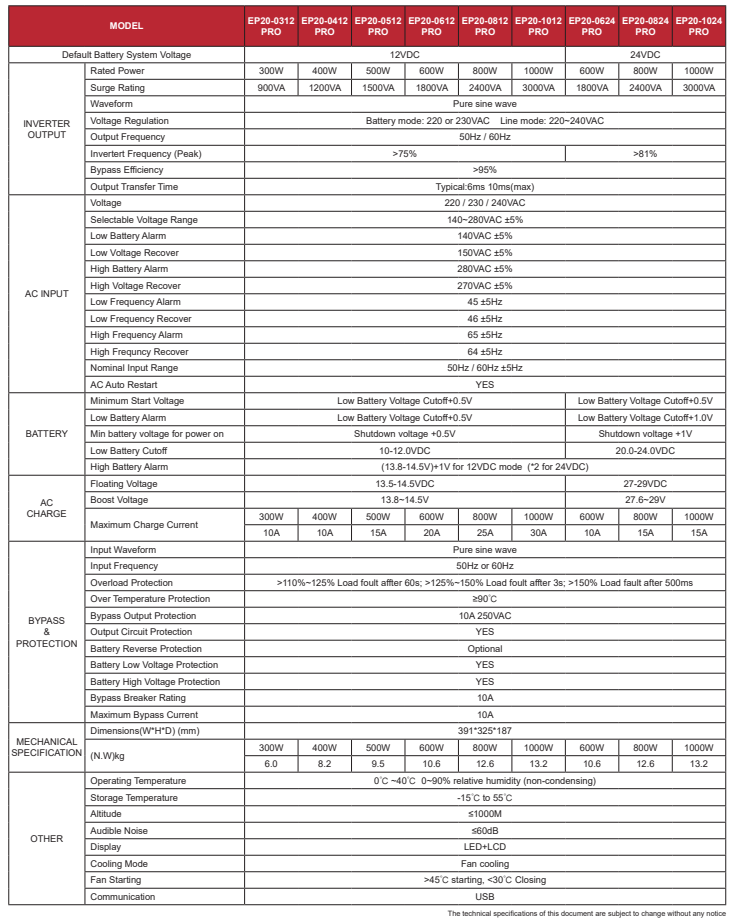 MUST EP1800 Series High Frequency Off Grid Power Inverter