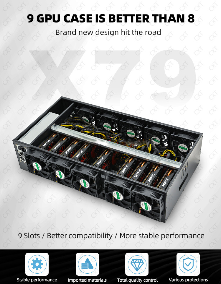 Factory Selling casing x79 9gpu server gpu case x79 dual cpu with 9 pieces 580 graphics card pc computer case chassis