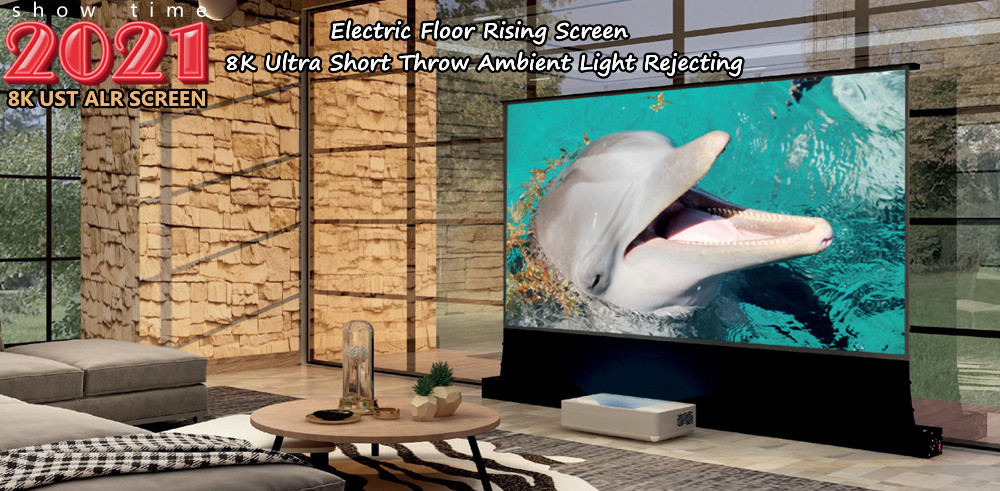 If you don't want a fixed frame screen or ceiling mount electric screen, then the Electric ALR floor screen will be ideal option.4K ultra-hd imaging, even if used in the bright living room during the day, can also experience the bright, vivid picture, electric screen structure design, can be hidden installation, do not take up the living room space.