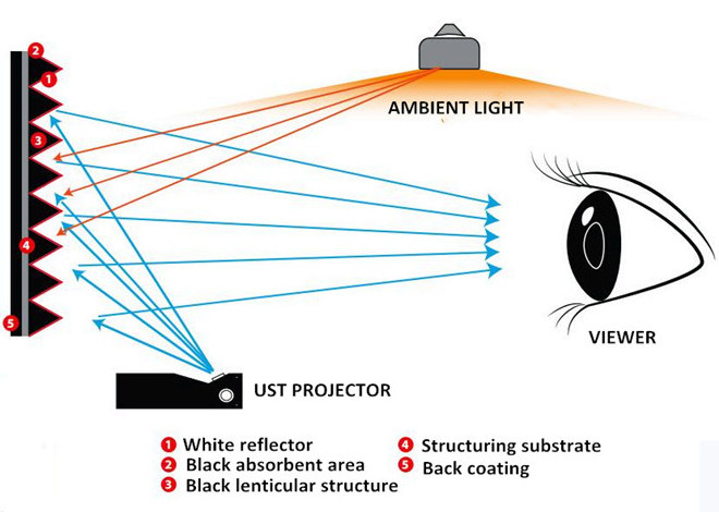 8K Ultra short throw ambient light rejecting screen