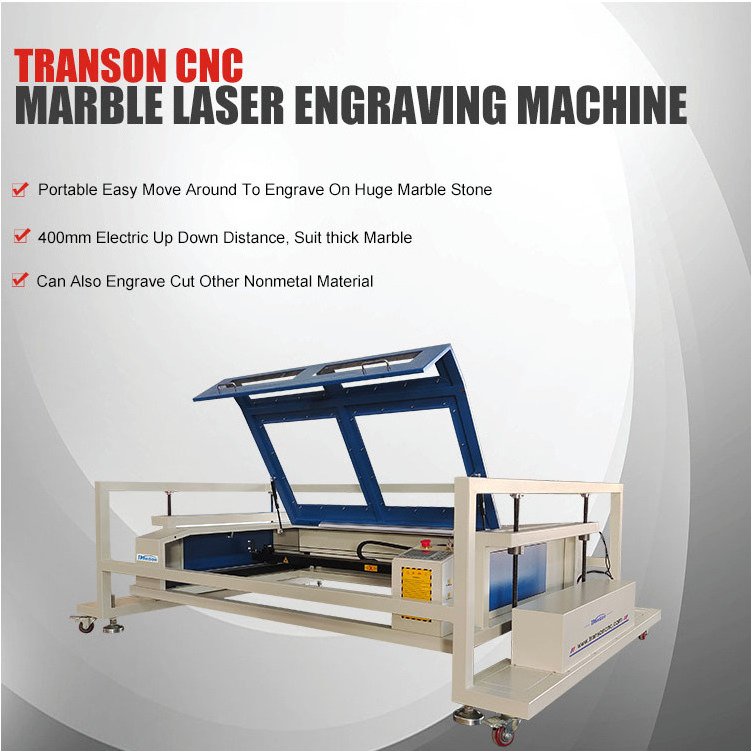 Transon this stone marble granite engraving machine is mainly design for huge marble stone engraving work. The machine with universal wheels can easy move around to put on any huge marble stone. With the 400mm electric up down distance, can put on almost all thick marbles stones include tombstones.