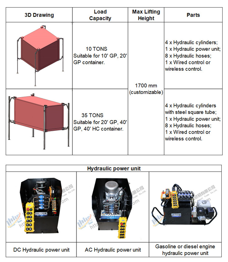 hydraulic lift jack for container