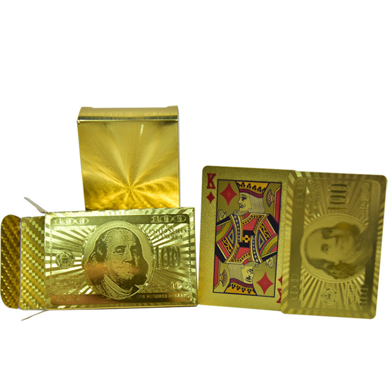 Durable Waterproof Plastic Playing Cards Gold Foil Poker Golden Poker 24K Gold Foil Plated Playing Cards Deck Gift