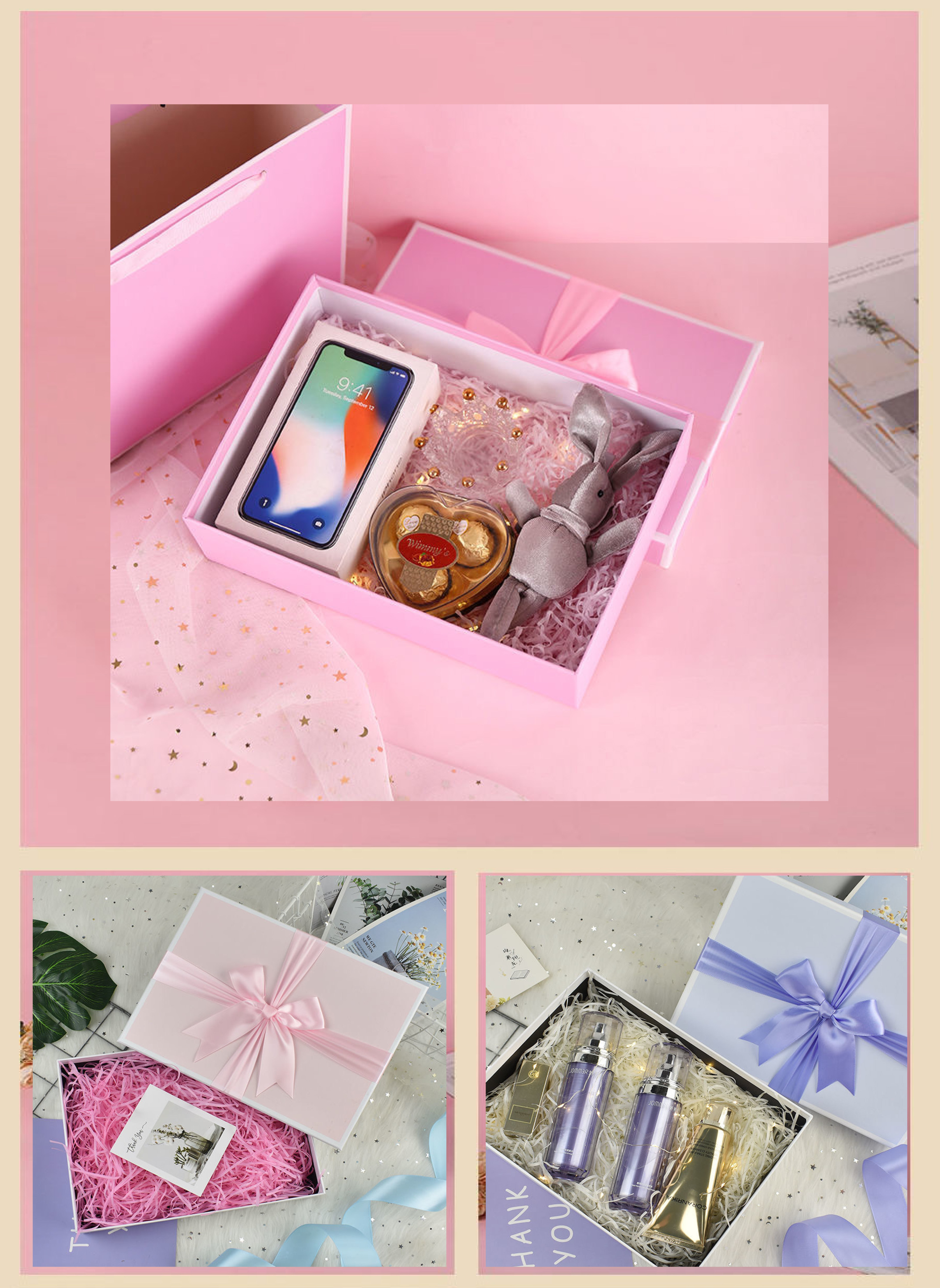 4. Blister lining: The blister lining is produced by blister process, which is light in weight, convenient in transportation, and meets the requirements of environmental protection. And it plays the role of separation, shock-proof and fixed in the gift box.