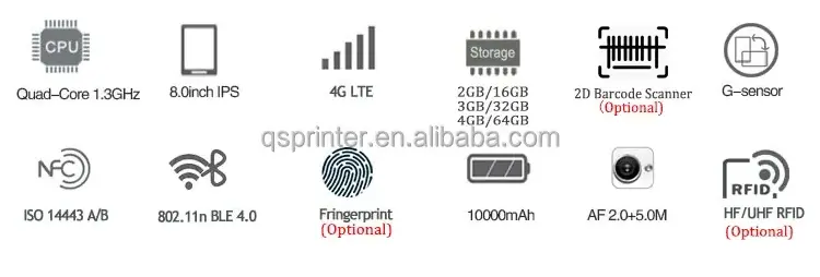 8 Inch Handheld Wireless Wifi Blue Tooth UHF Reader 1D 2D Barcode Scanner Android Rugged Tablet