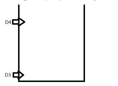 D3, D4, respectively, corresponding to the two level sensors, to the container plus liquid, the following sensor first contact