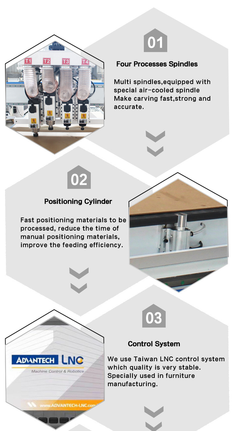 Automatic Tool Change Multi Spindle Heads Pneumatic CNC Router 4 Heads Wood 1325