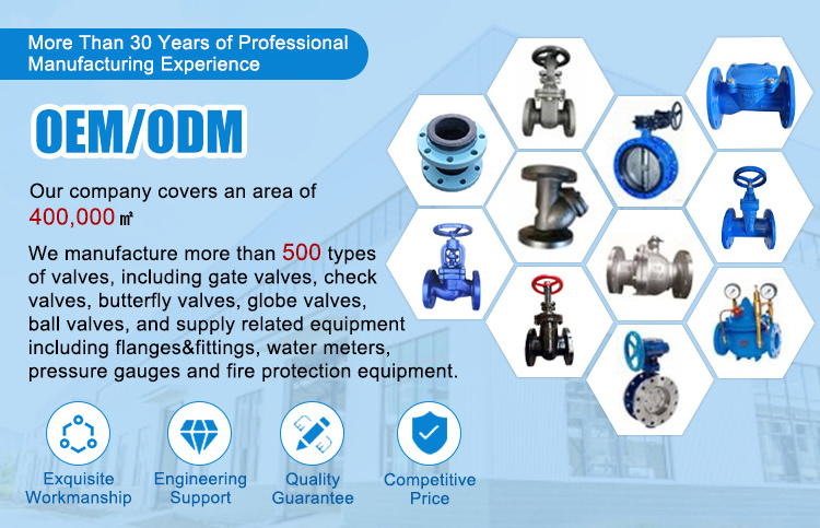 We can design, produce and process all kinds of cast iron, cast steel and stainless steel valves of medium and low pressure, and our leading products are gate valves, butterfly valves, globe valves, ball valves, check valves, etc., with more than 50 series and 500 kinds of specifications.
