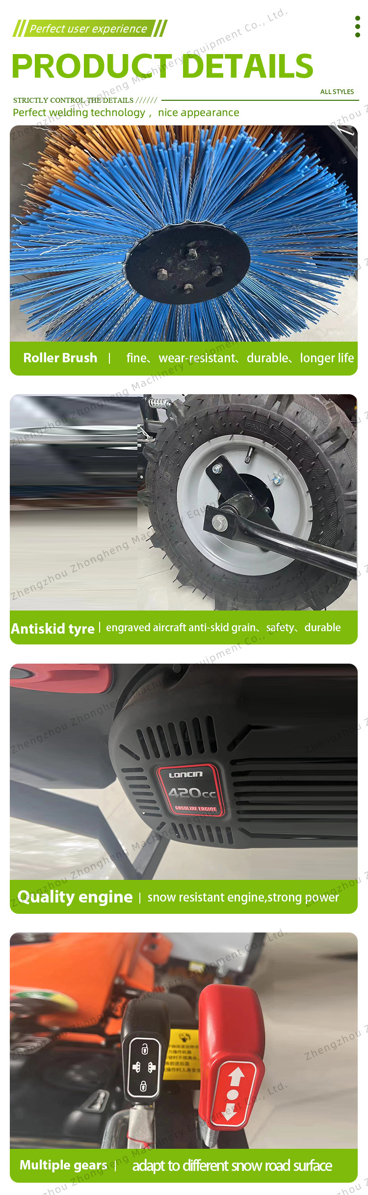 As an important equipment for snow removal in winter, snow plows have major advantages such as high efficiency, economy, and environmental protection. They are simple to operate, have high work efficiency and have excellent snow throwing distances.the snow throwing direction can be set independently.Electric-start snow plow has flashlight,so it can be operated at night or early in the morning.