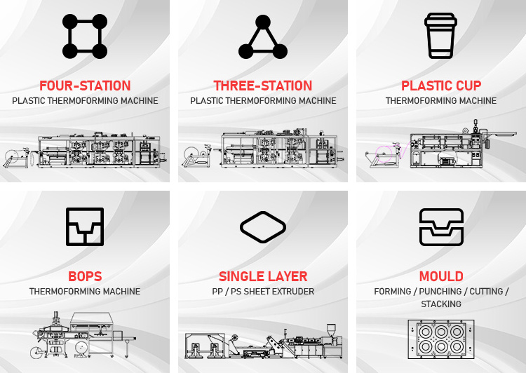 TTF series full-automatic thermoforming machine is our latest developed core product. The machine combines forming, punching, cutting, and stacking into process. widely used and suitable for most of the customer requested, it can produce plastic trays, containers, boxes, lids, etc. The machine is completely driven by servo motor. stable operation, low noise, high efficiency, high quality.