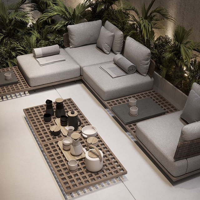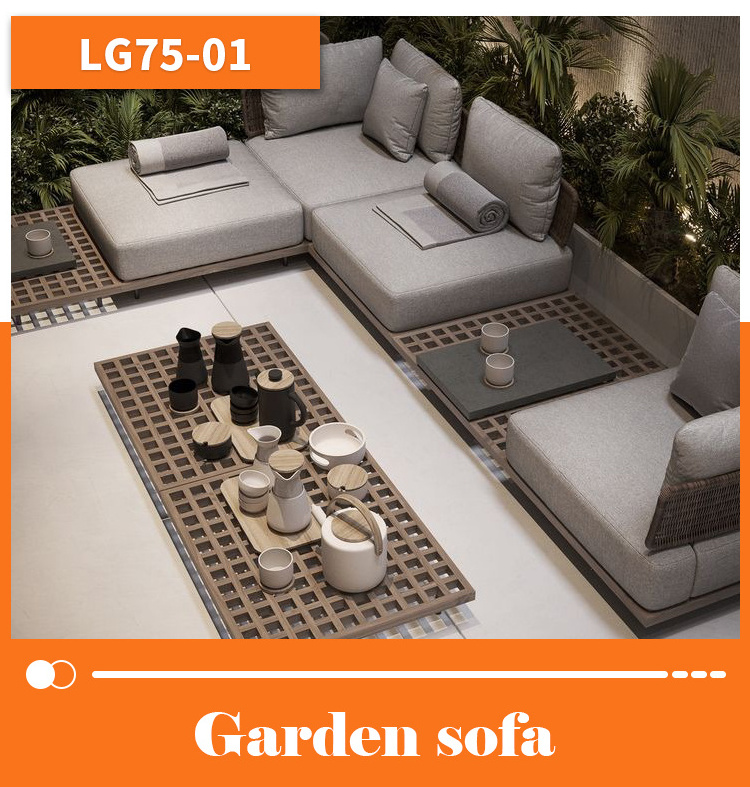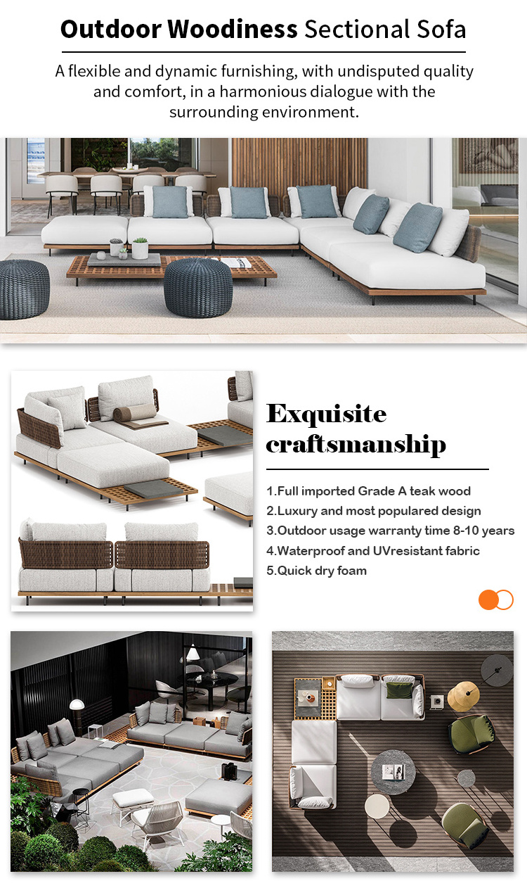 teak patio sectional solid wood modular sofa