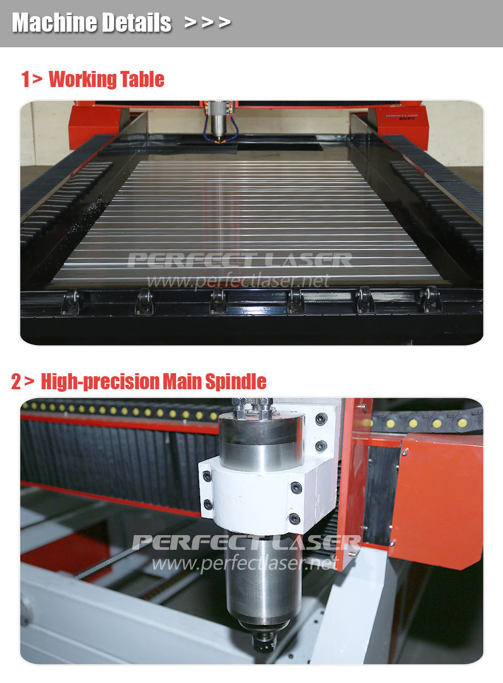 6.High speed machining: high kinetic energy, Y axis double motor drive, curve, straight line speed. Unique save way of multiple work-piece machining zero .