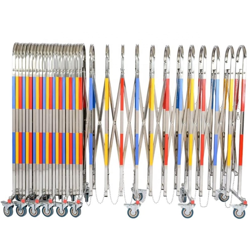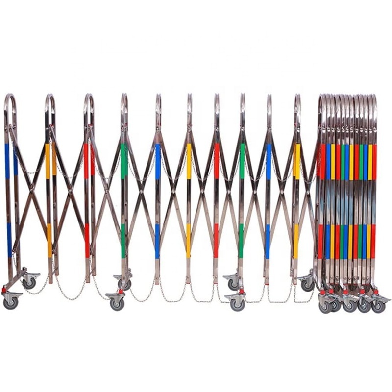 Stainless Steel Traffic Fence Expandable Metal Mobile Safety Barricade with Casters for Schools