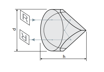 BK7 or UVFS Corner cube retroreflectors designed to deviate incident light by 180 degrees independently of an angle of incidence. These prisms have 3 mirror surfaces making angles of 90 deg to each other, juxtaposed to form the corner of a cube with the entrance face perpendicular to cube diagonal. All beams, despite of incident direction, are reflected back to the original direction. Corner cubes are used in high precision applications or with lasers over very long distances.