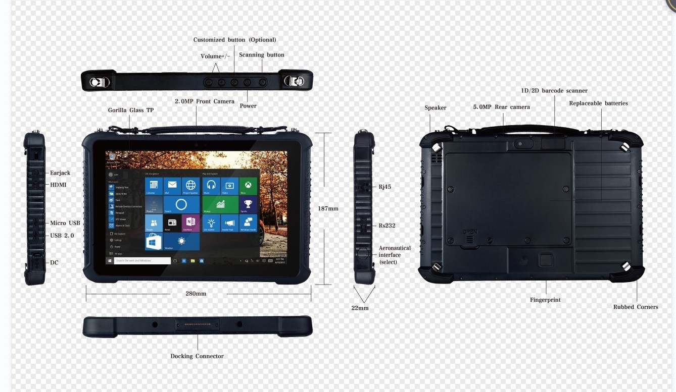 Rugged Tablet for Windows 10 vehicle mounted 700nit sunlight view screen tablet NFC reader Mobile computer 4G LTE RJ45 TABLET