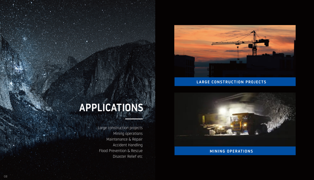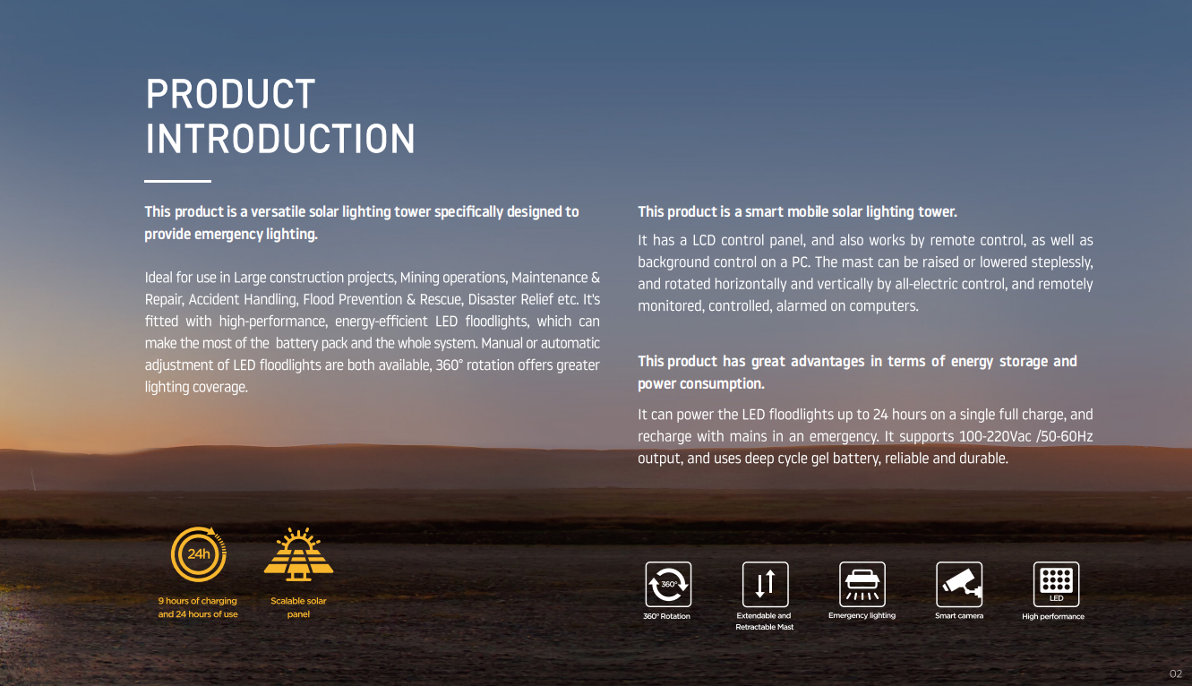 Mobile and powerful:One full charge can run the LED floodlights for up to 24 hours, and theilluminated area can reach 300m?.
