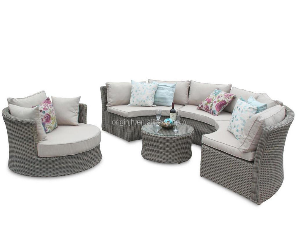 Exotic stylish style patio garden natural alfresco half moon sofa love seat rattan / wicker furniture sets