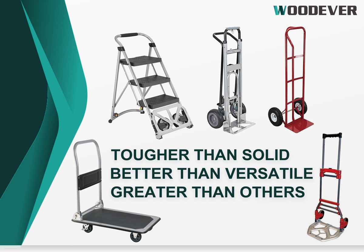 WOODEVER offers a wide range of hand trucks, carts, wheelbarrows, and stepladders made from high-quality materials such as steel,stainless steel, or aluminum, with a loading capacity ranging from 50 kg to 400 kg