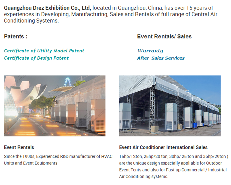 Our Drez-ACU Series Event Air Conditioners (15hp/12ton to 36hp/29ton ) are the unique design