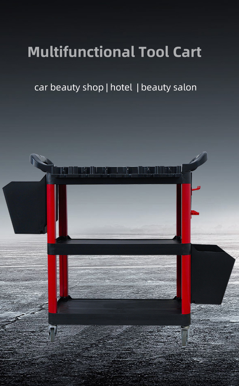 High Quality Multi-function Auto Repair 3 Shelf Storage Hand Push Plastic Tool Cart Cleaning Car Detailing Rolling Trolley Cart