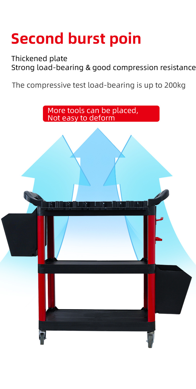 High Quality Multi-function Auto Repair 3 Shelf Storage Hand Push Plastic Tool Cart Cleaning Car Detailing Rolling Trolley  Cart