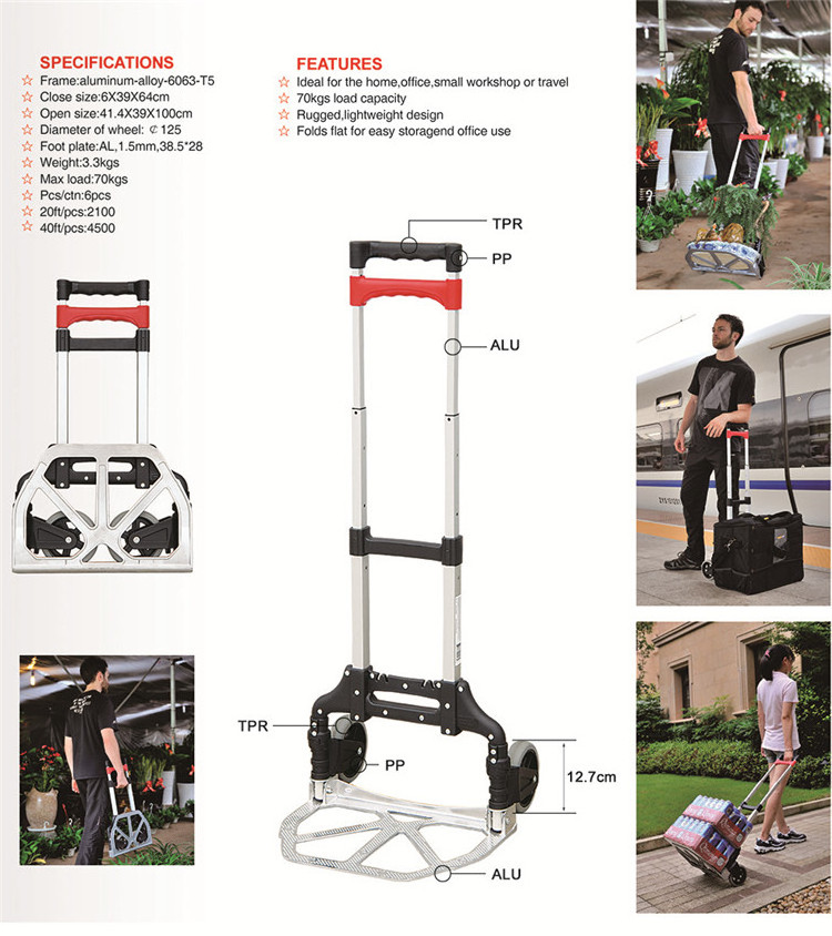 | Hot Selling Aluminium Luggage Cart Foldable Folding Hand Trolley for Shopping |
