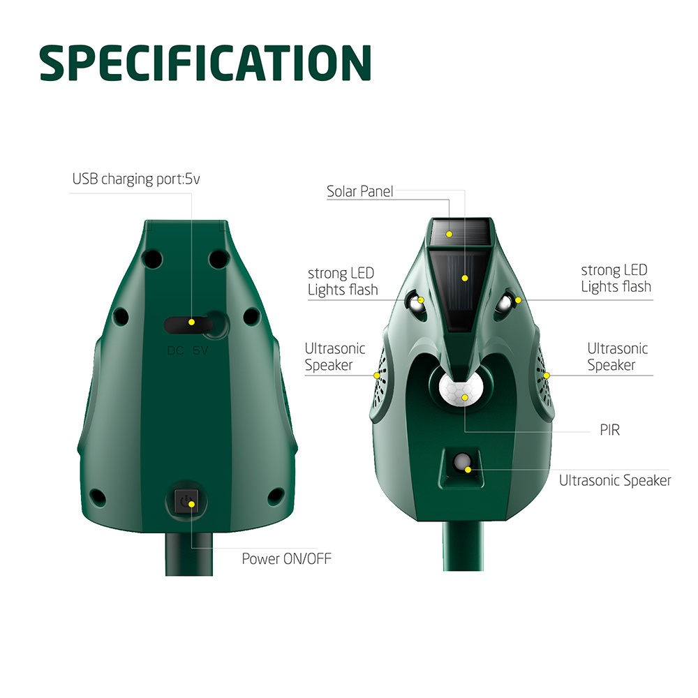 High Brightness LED Flash Infrared Detective Outdoor Ultrasonic Animal Repeller For House Garden