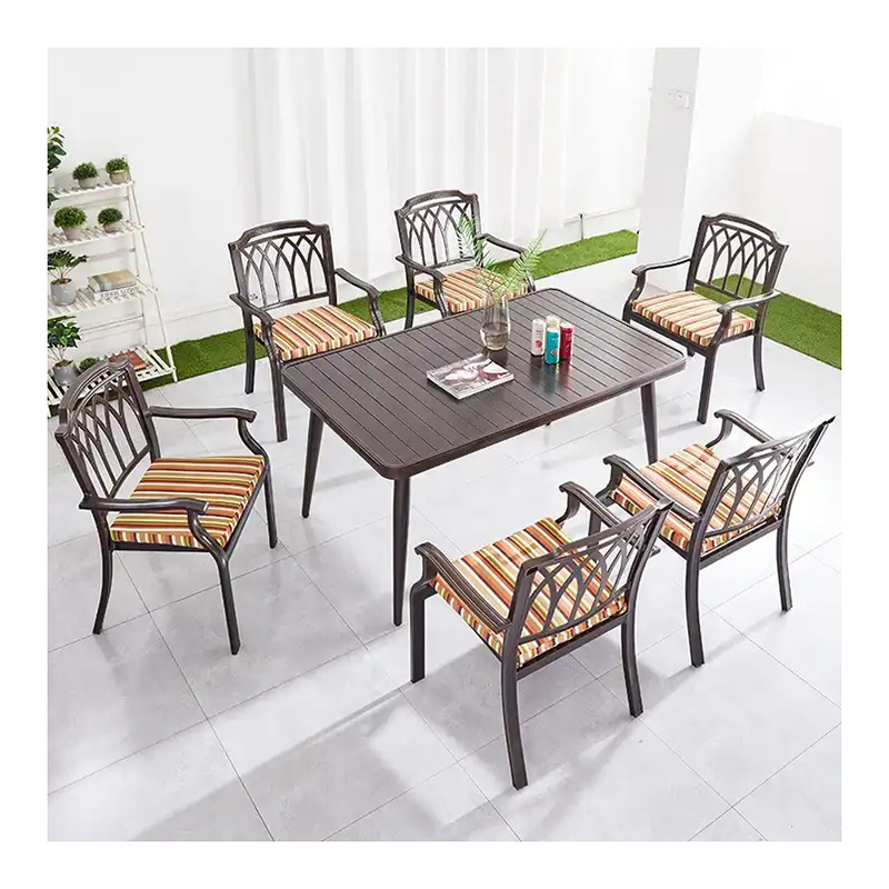 Waterproof Casting Leisure Long Table French Bistro Chair Patio Furniture Aluminum Restaurant Outdoor Dining Set