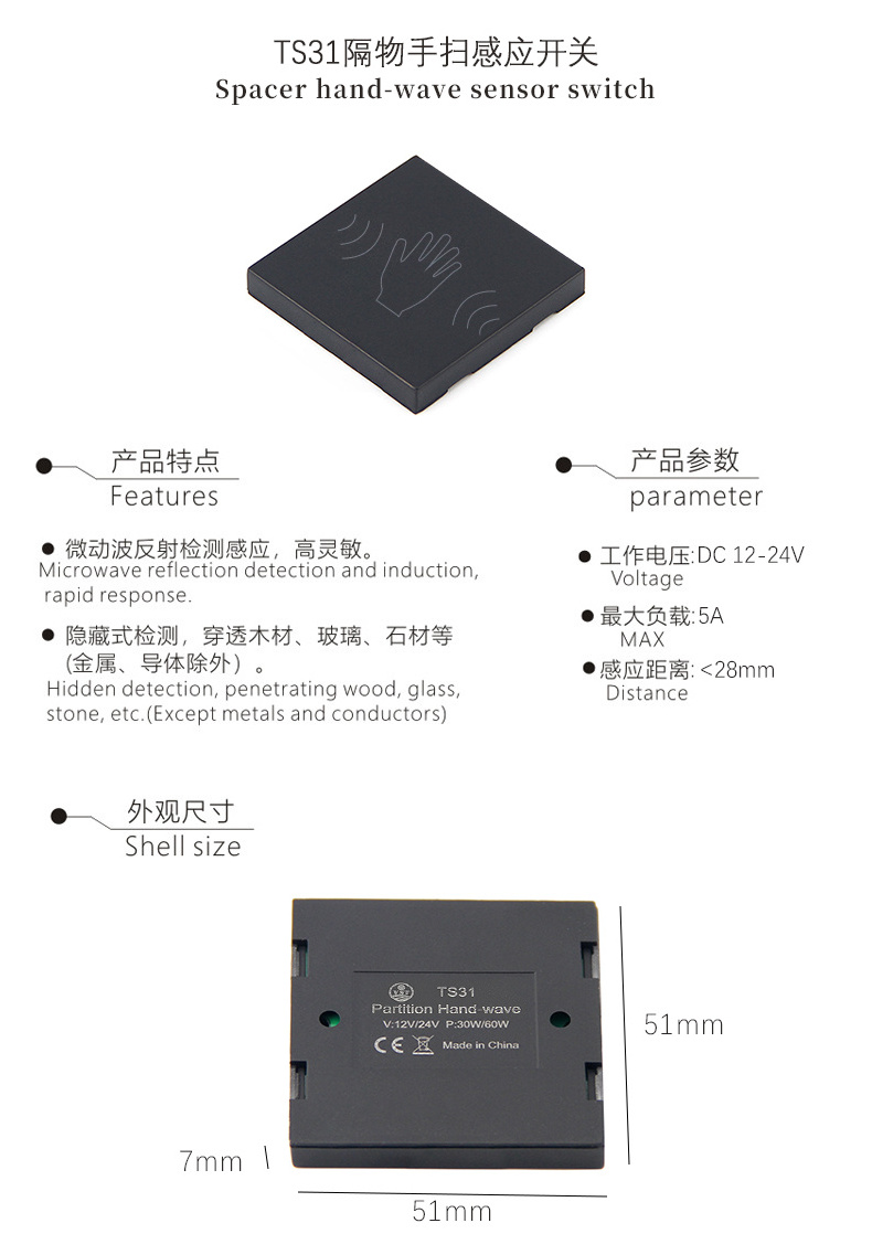 VST No contact Hidden Partition Hand Wave Light Sensor Switch LED Cabinet Light Sensor Switch