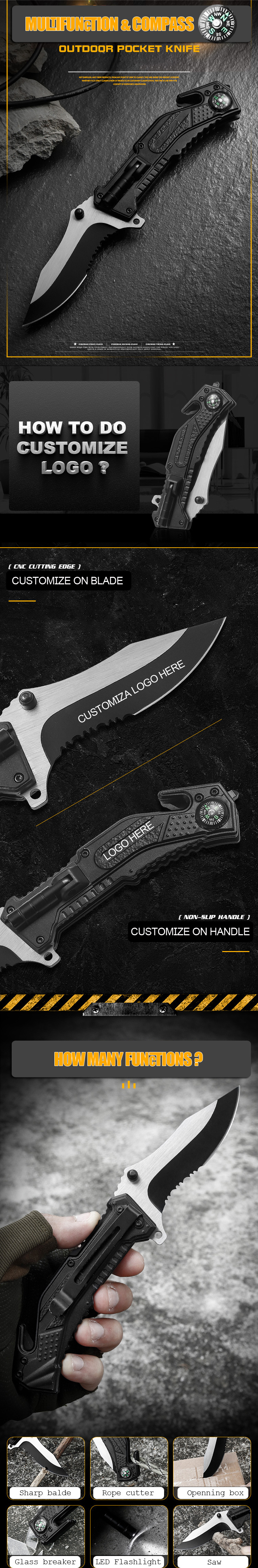 ■ Great Flip Knife for Hunting, Fishing, Camping, Outdoor, Hiking, Emergency, Work, Utility use and DIY Activities. MultiFunction tool is not just a knife, it also can be an emergency glass breaker, durable rope cutter and can opener..