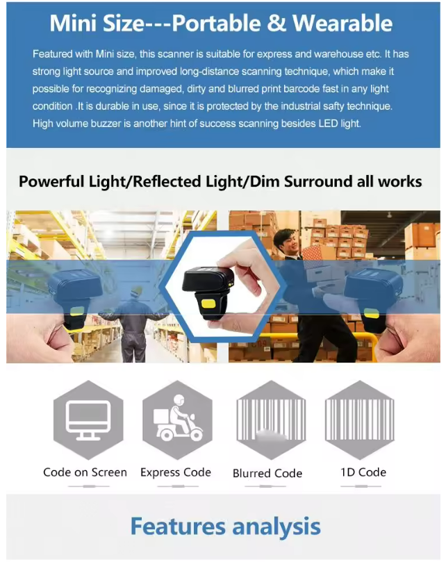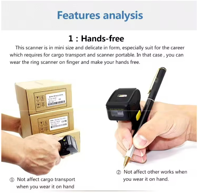 Support wireless Bluetooth communication, small size, easy to carry, single charge ultra-long working hours, wearing ring type, to bring the operator super comfortable working experience and working environm.