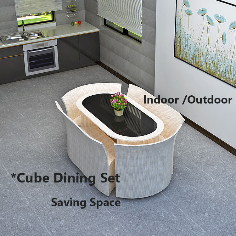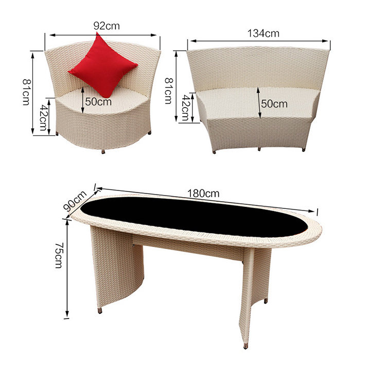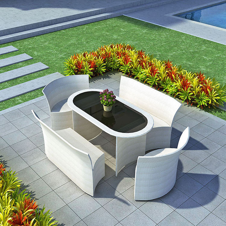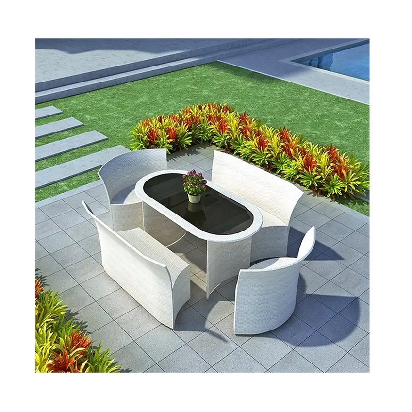 Luxury Modern White Garden Outdoor Wicker Cane Furniture Patio Aluminum Rattan Dinning Table Set 6 Chairs