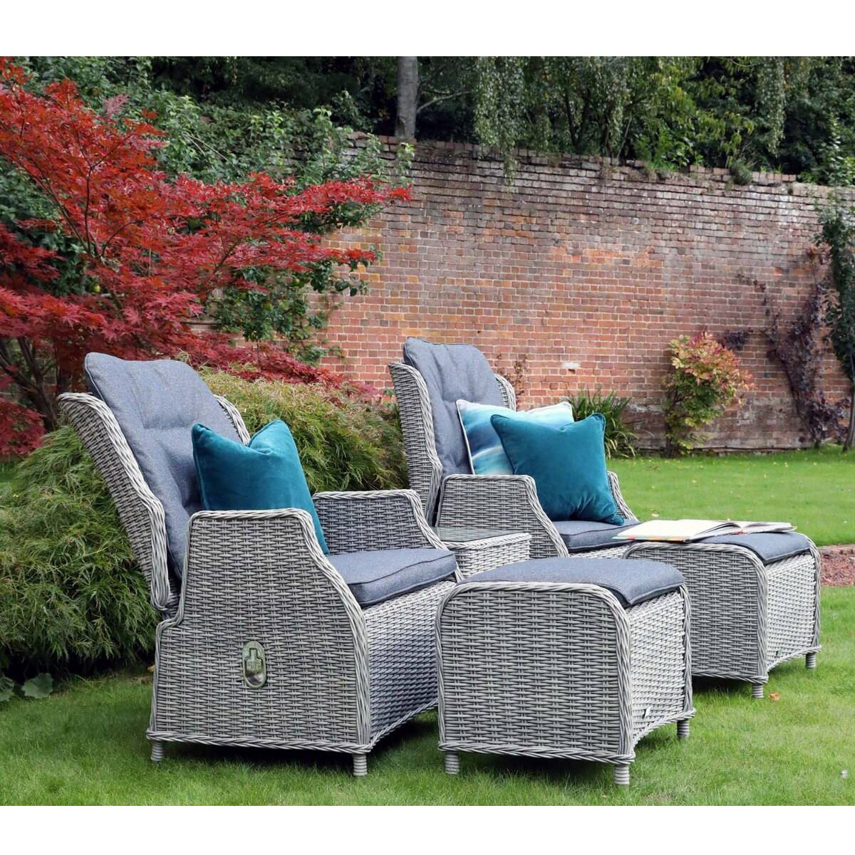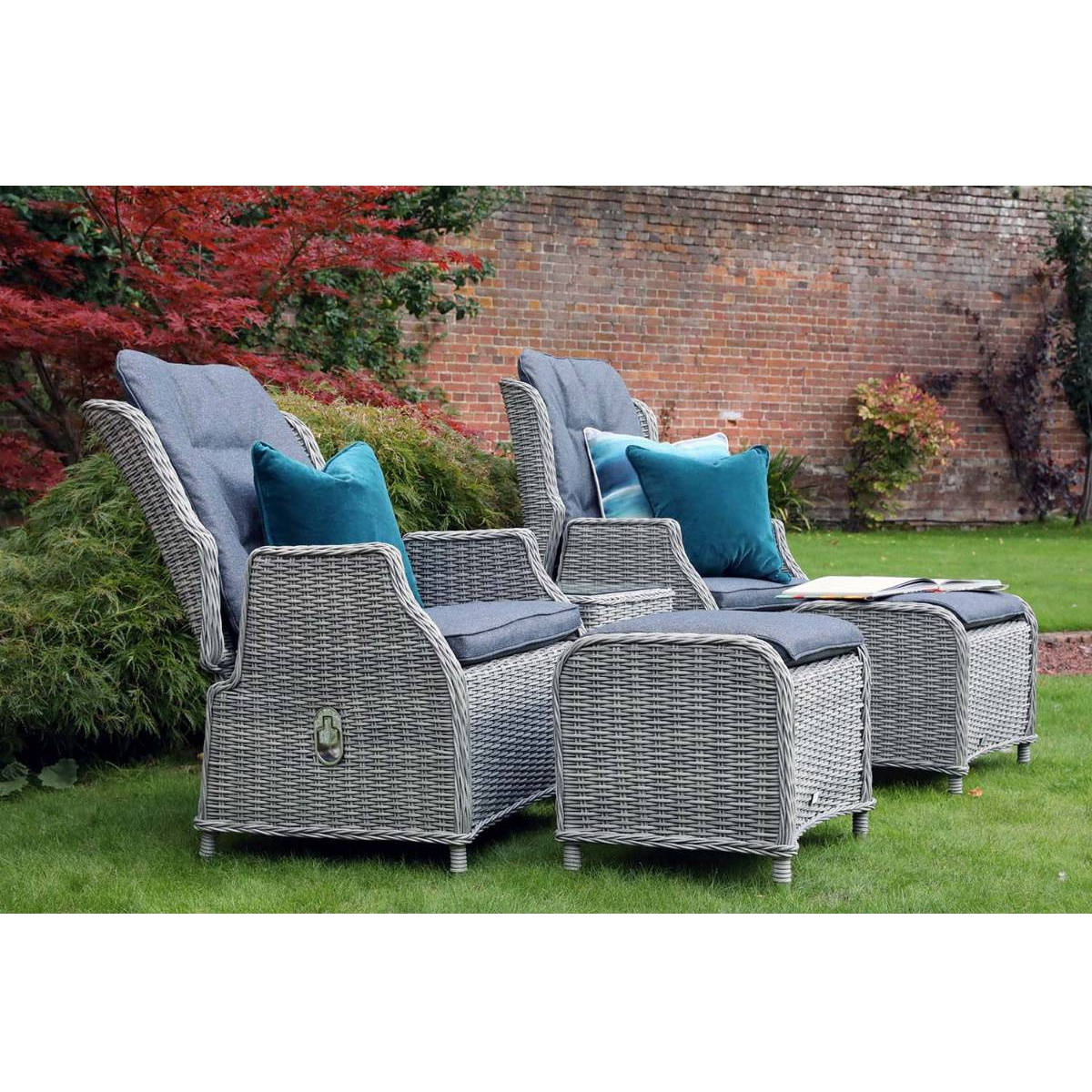 AUDU Classics All Weather Outdoor Furniture 2 seat Rattan High Back Reclining Armchair Set