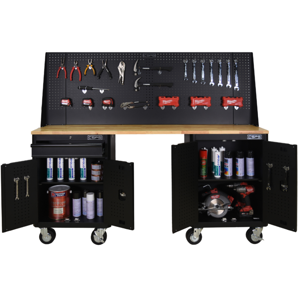 Woodtop: 183cm W x 40cm D x 2.5 cm H Pegboards: 181cm W x 15cm D x 68cm H |