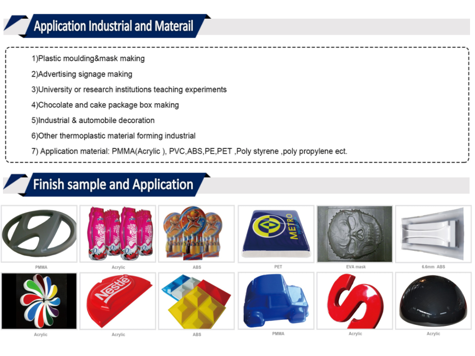 A1 Vacuum forming machine can use PMMA(Acrylic ), PVC,ABS,PE,PET thermoplastic material .