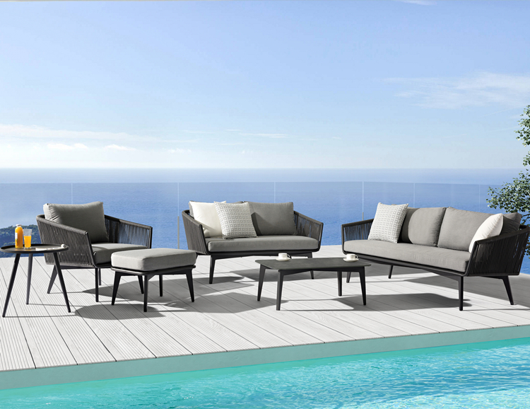 Modern Black wood Patio furniture 4 piece Rattan Garden Furniture Rope Weaving Outdoor Sofa