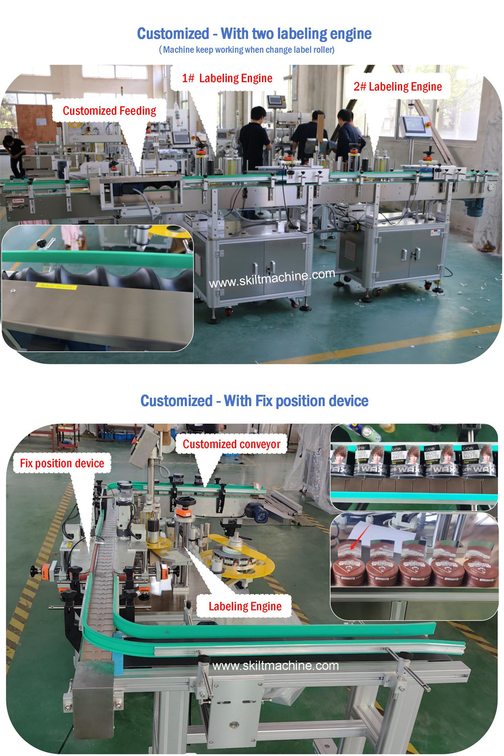 1. A large area of application for round bottle/jars/cans labeling,usually labeled wrap around ;