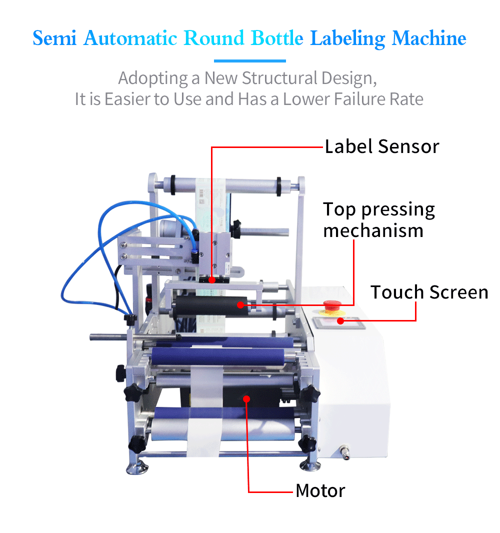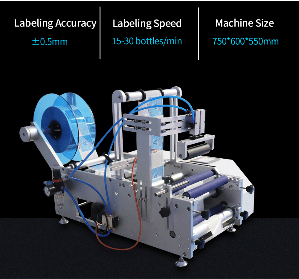 Round Bottle, Plane, Side Labeling Machine, Semi-automatic/Automatic Filling Machine, Semi-automatic/Automatic Packaging Machine, Self-adhesive Label, We Can Also Customize the Machine.
