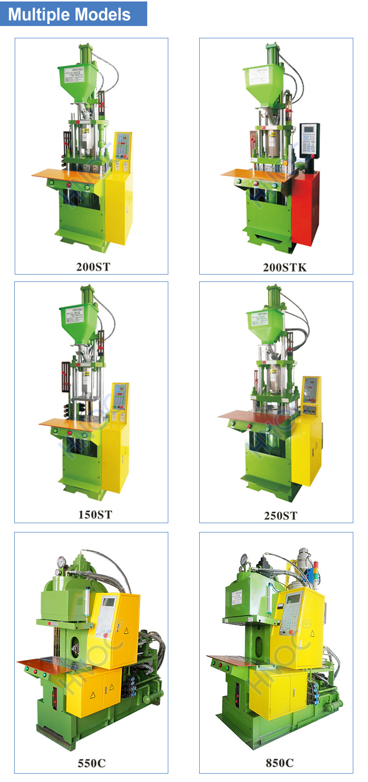 Multi stage temperature control, multi stage injection pressure, injection rate, and back pressure are infinitely adjustable.